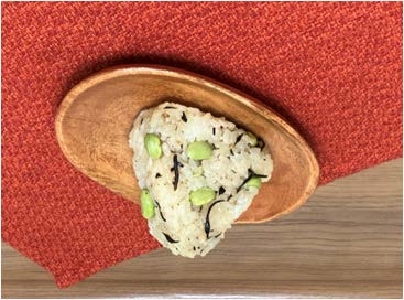 『直巻 梅しょうゆごはんの枝豆しそひじき』は、梅の酸味とだしの風味が特徴の「とろ~り梅しょうゆ」を混ぜ込んだごはんに、梅と相性のよい紫蘇風味のひじきと、彩りのよい枝豆を合わせ、おむすびにしています。梅が苦手な方でも食べやすく、さっぱりとした味わいに仕上げています。
