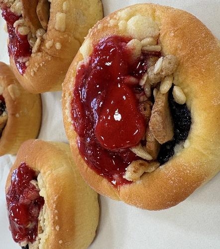 朝食に人気の「アサイーボウル」をパンで表現しました。