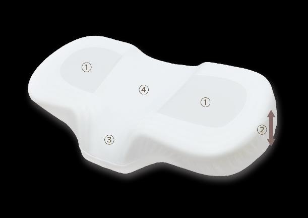 :https://www.donki.com/j-kakaku/product/detail.php?item=5103 ①横向きの状態でも耳への圧迫を軽減する「イヤーポケット」