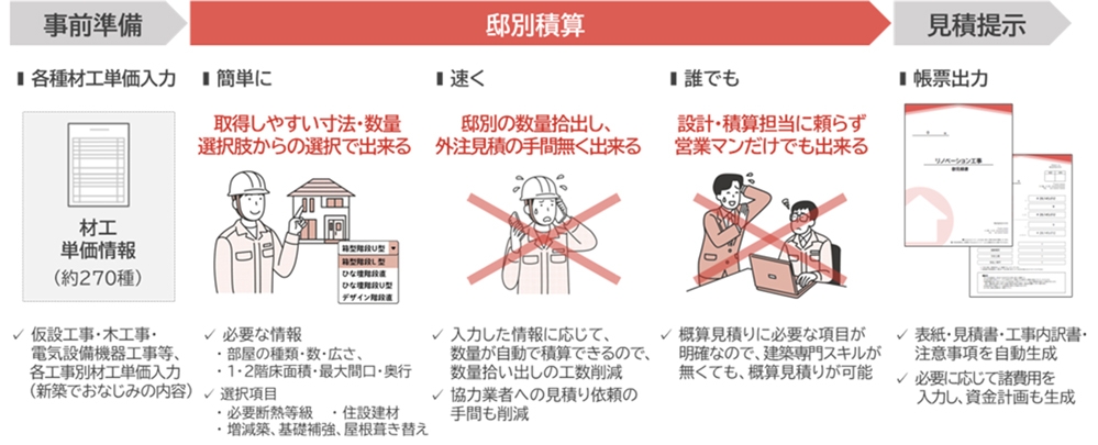 <特長:誰でも簡単に、スピード見積りを実現するリノベーション専用ツール>