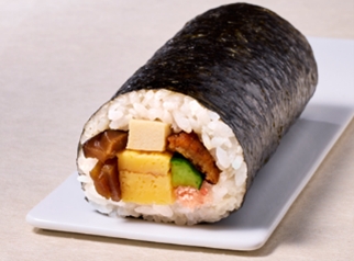 焼穴子・厚焼玉子・高野豆腐・きゅうり・かんぴょう・おぼろ・椎茸の7種類の具材を中具にした恵方巻です。