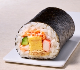 米の重量のうち約10%をカルローズ米としています。 サーモン、カニ風味かまぼこ、厚焼玉子、きゅうりに、胡椒で風味付けしたクリームチーズマヨネーズを合わせ洋風に仕立てた恵方巻です。 ※アプリ予約限定。1都3県(東京都、神奈川県、埼玉県、千葉県のみで販売) <商品サイズ:直径 約5.0cm、長さ 約9.0cm> |