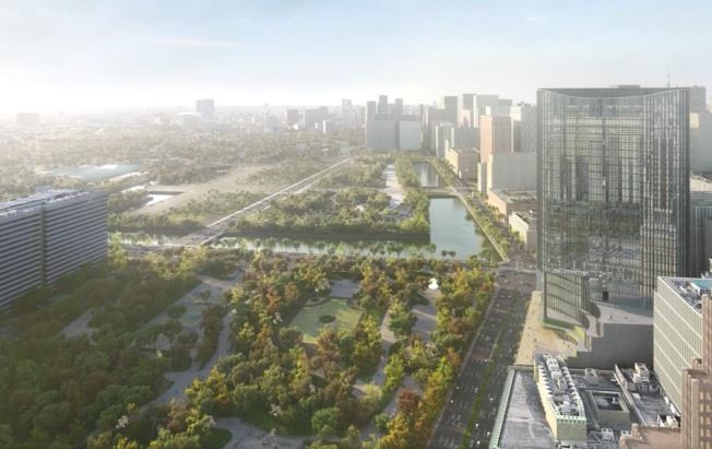 中地区では、日比谷公園とつながる道路上空公園を整備することにより、当街区全体の回遊性を飛躍的に向上させ、心地よいウォーカブルな空間や賑わいを創出する場となることをめざします。