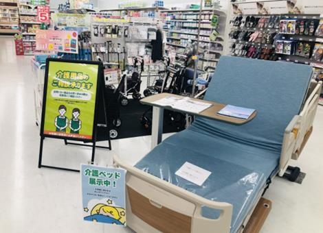 併設するドラッグストア内には、介護ベッドを設置し、「見て・触れて・寝て」体験できる展示環境を整備します。 お客様が実際の使用感を確かめることで、購入やレンタルに対する納得感を高め、ご家族の介護をより身近に感じていただける場を提供します。 また、店内には福祉用具専門相談員を常駐させ、介護用品や住環境整備に関する専門的な相談対応を行います。 この取り組みは、介護関連商品の売上拡大にとどまらず、薬局の在宅訪問サービスやケアマネジャーとの相互連携を強化し、地域の介護課題の解決に寄与します。