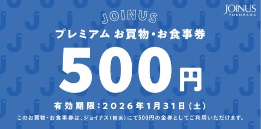 ジョイナスにてプレミアムお買物券を販売開始【相鉄ビルマネジメント】 相鉄グループの(株)相鉄ビルマネジメント(本社・横浜市西区、社長・左藤 誠)が運営するジョイナスは、相鉄ポイント会員さまを対象に、2025 年 12 月 5 日(金)・6 日(土)の間、ジョイナス各店でのお買物・お食事で使える、おトクなプレミアムお買物券を数量限定で販売します。購入には、専用サイトからの事前予約が必要となり、11 月 26 日(水)10:00 より予約を開始します。