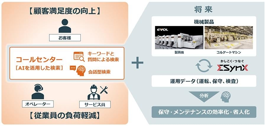 三菱重工グループは、機械製品の稼働の最適化や、アフターサービス業務のさらなる効率化を目指し、機械製品の運転・保守・検査データを連携させ、機械製品を取り巻くサービス全体の知能化を推進します。この取り組みによって、人に依存しない仕組みを構築し、徹底した品質の均一化と業務効率向上を実現し、グローバル競争力を一段と強化していきます。