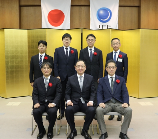 【写真】代表取締役社長 広瀬(前列中央)とJFEスチール社長賞の受賞者