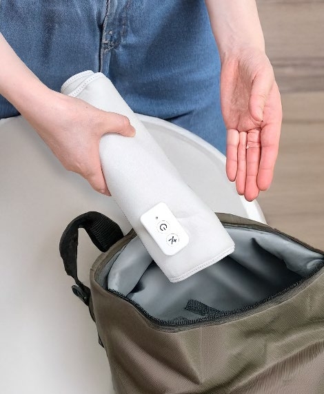 エアリフレッシャー「ANGV-MSF10-A」は、ふくらはぎや足、手・腕に巻くだけで、心地よい加圧により手軽にリフレッシュすることができる商品です※1。最大100kPa の強力なポンプ圧を搭載し、弱・中・強の 3 段階の調整がワンボタンでできるシンプルな操作性が特徴です。