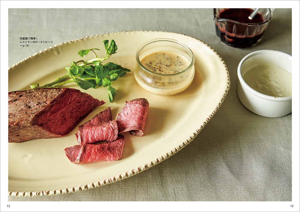 炊飯器で簡単! ハーブ香るしっとりロースト風ポーク ・ローストポークの生春巻き ピーナッツソース&ごまだれ ・ローストポークと梅の冷やし茶漬け 炊飯器で簡単! レストランのローストビーフ ・赤ワインとバルサミコの濃厚ソース、粒マスタード&はちみつソース、わさびクリームチーズソース