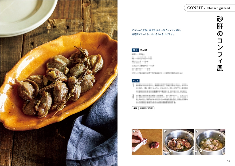 【コンフィ】 鶏もも肉のコンフィ風ソテー ・レモンバターソース、にんにくしょうゆだれ、オレンジマーマレードソース 炊飯器で簡単! 豚バラのやさしいコンフィ風 ・カリ豚とねぎの中華そば ・豚バラと焼きなすのポン酢ジュレサラダ ・豚バラコンフィの香ばし焼きおにぎり 砂肝のコンフィ風 ・砂肝コンフィのサラダ ・砂肝コンフィのガーリックオイルマリネ ・砂肝ときのこの焦がししょうゆバター炒め