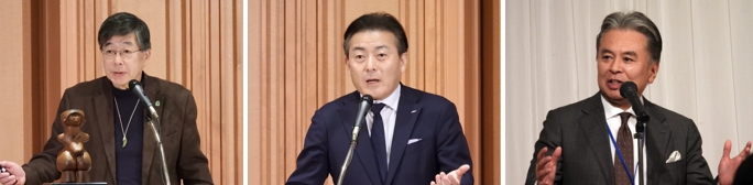 (左から、基調講演を行うANA総合研究所 取締役会長 ?刀秀記、開会挨拶を行うANA総合研究所副社長で北前船交流拡大機構