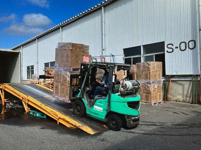 (2)海上コンテナへのバンニング(コンテナへの積み込み)をパレットで行います。【省力化】