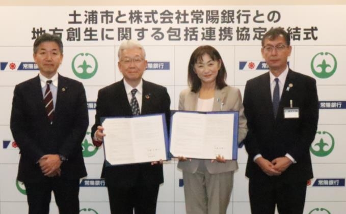 土浦市との地方創生に関する包括連携協定の締結について 常陽銀行(頭取 秋野 哲也)は、土浦市(市長 安藤 真理子)と「土浦市と株式会社常陽銀行との地方創生に関する包括連携協定」(以下、「本協定」)を締結しましたので、下記のとおりお知らせいたします。