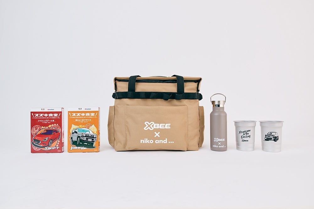 また、本コラボレーションの⼀環として、新型「クロスビー」のご成約キャンペーンでは「niko and ...」がオリジナルデザインのアイテムを制作。期間中に新型「クロスビー」をご成約いただいた⽅に、限定コラボグッズセットを抽選でプレゼントいたします。
