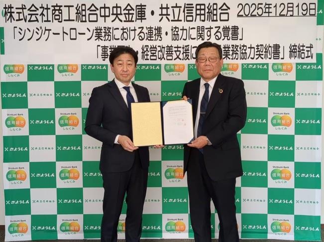 株式会社商工組合中央金庫(本社:東京都中央区、代表取締役社長:関根 正裕 以下商工中金)は、中小企業へのソリューション提供を強化するため、共立信用組合(本店:東京都大田区、理事長:鈴木 孝一)と「シンジケートローン業務における連携・協力に関する覚書」及び「事業再生・経営改善支援に関する業務協力契約」を締結しました。