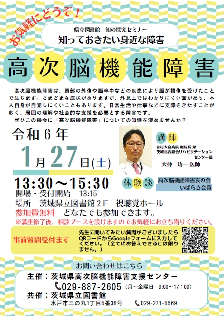 県立図書館「知の探究セミナー」知っていますか?高次脳機能障害