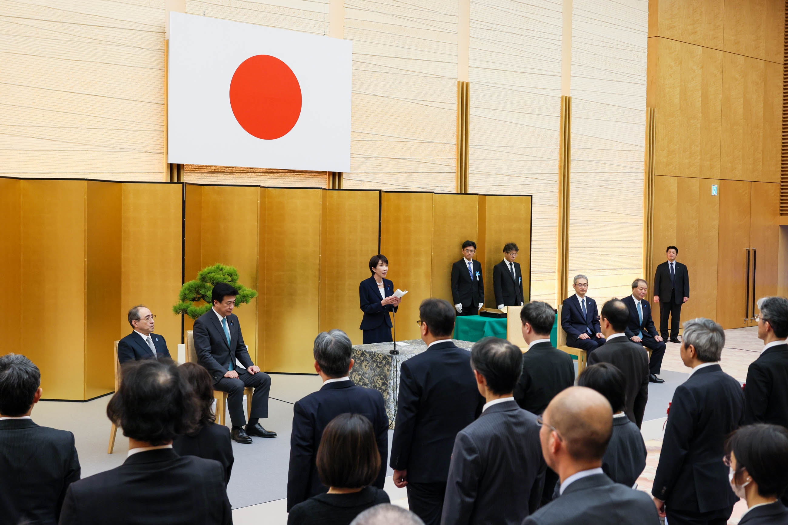 令和7年12月22日、高市総理は、総理大臣官邸で内閣及び内閣府永年勤続者表彰式に出席しました。