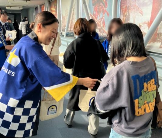 ※直行便は長崎=神戸のみ。神戸乗継で羽田、札幌(新千歳)、仙台、茨城、那覇へ運航。 本日、長崎=神戸便、神戸=長崎便をご利用いただいたお客様に、長崎空港就航15周年を記念したランチバックとステッカー、有限会社和泉屋様のカステラ(一般社団法人 長崎県観光連盟様 ご協力)、長崎空港開港50周年の記念品をお渡ししました。