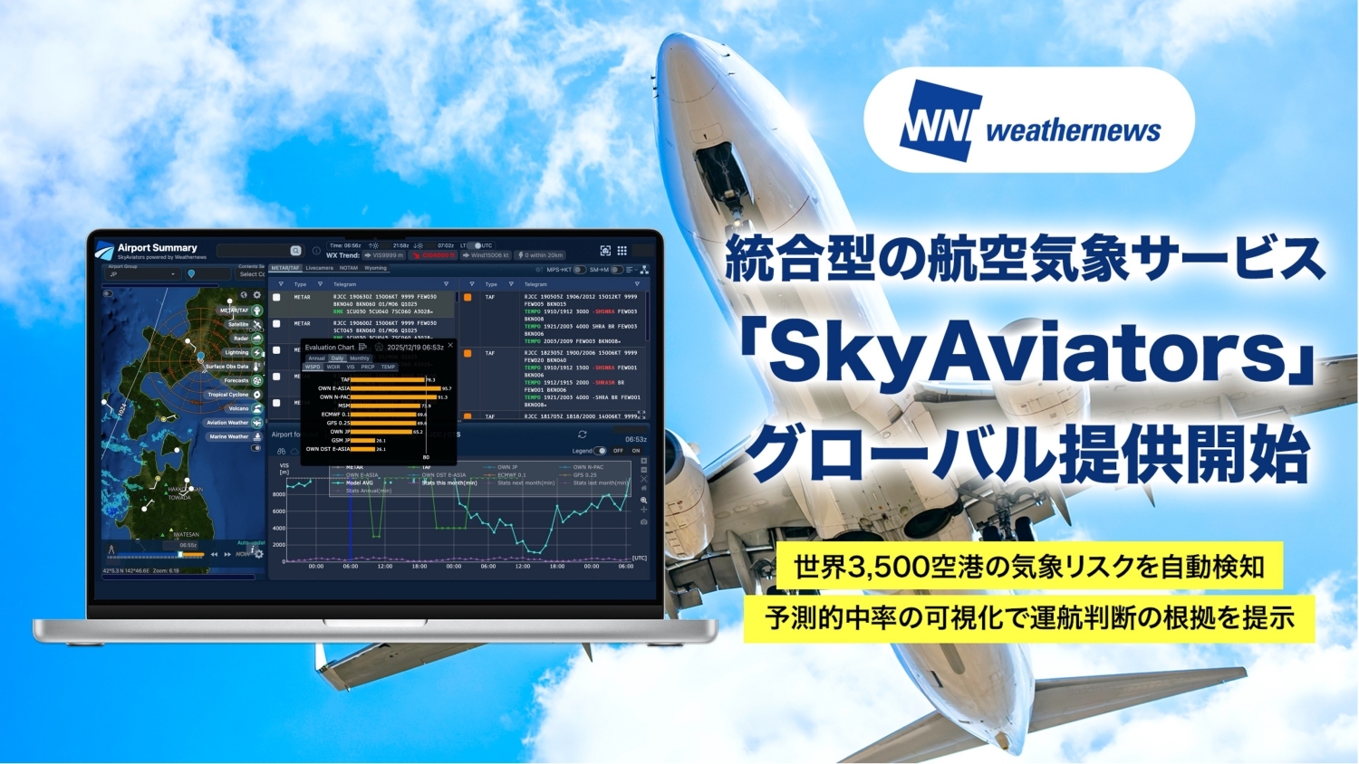 世界3,500空港の気象リスクを自動検知、予測適中率の可視化で運航判断の根拠を提示