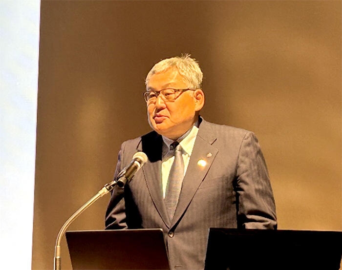 本発表会の冒頭、大谷社長は「生産性」をテーマに挨拶し、中期経営計画2024ローリングプランで示した新たな生産性に関する指標を深掘りしたうえで、今後は業績向上を目的とする取組と労働力不足を補うための取組の両面を重視する方針を示しました。さらに、2040年に向けて「ものづくりを起点とした突出価値の創造」を通じ、人々がいきいきと暮らす協創社会の実現を目指すと述べ、ノウハウ共有の重要性に触れつつ、本発表会への期待の言葉を贈りました。
