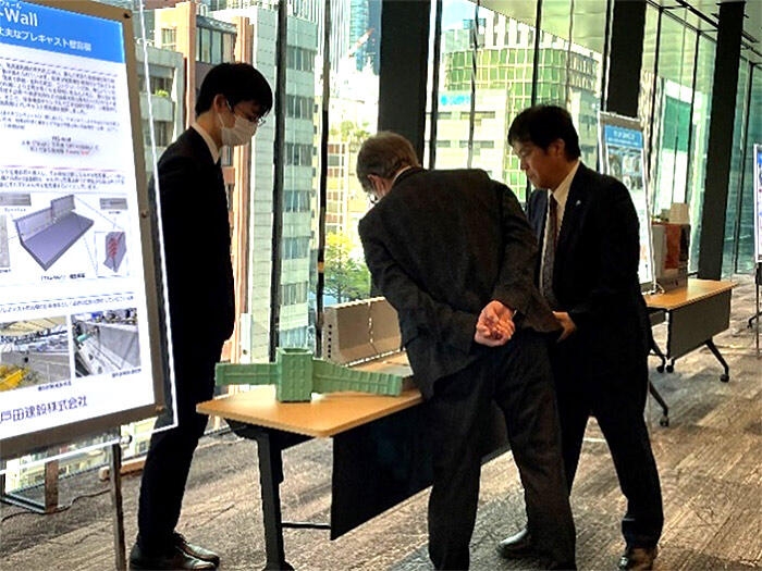 戸田建設(株)(本社:東京都中央区、社長:大谷 清介)は、12月5日(金)に第64回土木技術研究発表会を開催しました。本発表会は当社の土木技術の向上と継承を目的に開催しており、今年も昨年同様、TODA BUILDINGのTODA HALL & CONFERENCE TOKYOを会場としました。また、会場前のホワイエ空間に保有技術のパネルや模型などを展示し、最新情報を共有しました。さらに、Web会議システムによる全国の支店との接続に加え、作業所や自宅からでも視聴できるようにライブ配信を行いました。