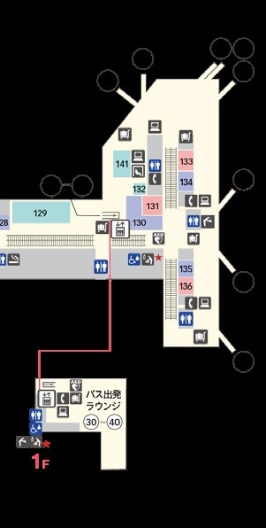 場 所:第1ターミナル1階 保安エリア バスラウンジ