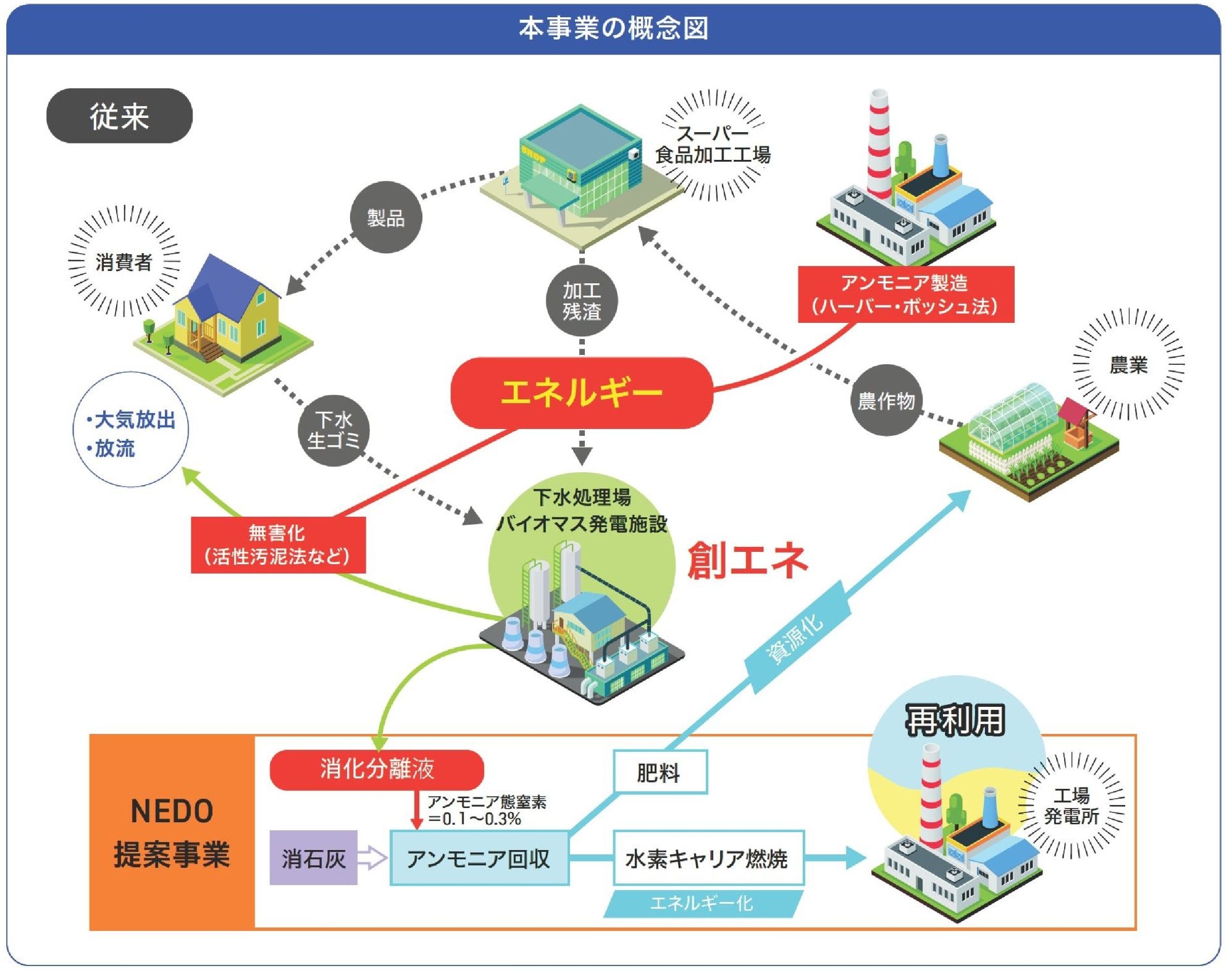 NEDOの助成事業である「脱炭素社会実現に向けた省エネルギー技術の研究開発・社会実装促進プログラム/実用化開発/膜分離と蒸留を利用した低濃度アンモニア含有廃液からの高効率アンモニア回収技術の開発」(以下、本事業)の一環として、木村化工機株式会社、国立大学法人神戸大学、株式会社ノベルズ、株式会社FTバイオパワーは、「膜分離と蒸留を利用した低濃度アンモニア含有廃水からの高効率アンモニア回収技術」の開発に取り組み、このたび、国内初となるメタン発酵消化液から省エネルギーでアンモニアを回収するプロセス(以下、本プロセス)を開発しました。