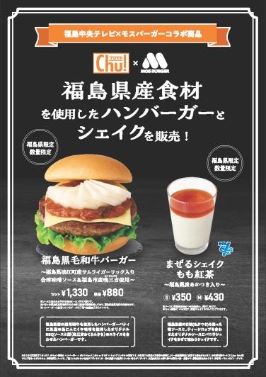 当チェーンでは、地域の特産品を活かした商品開発を進めています。今回の商品は、福島中央テレビの情報番組『ゴジてれ Chu!』との、初めてのコラボ企画として開発した新商品です。福島県で育てられた黒毛和牛や、双葉郡浪江町のブランドニンニク「サムライガーリック」などを使ったバーガーのほか、福島県産の白桃「あかつき」のピューレを使用したソースをかけたシェイクをご用意しました。地元食材を使用することで、地域産業の活性化および県内のモスバーガー店舗の地域密着活動を盛り上げていきます。