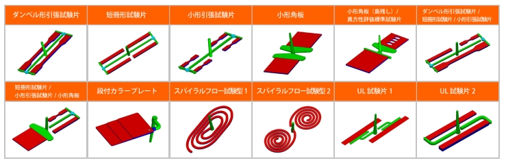 これにより、JISなどの各種規格に準拠した試験片の成形頻度が増加していますが、金型一式の製作・交換に多大なコストと工数がかかる点が課題となっていました。