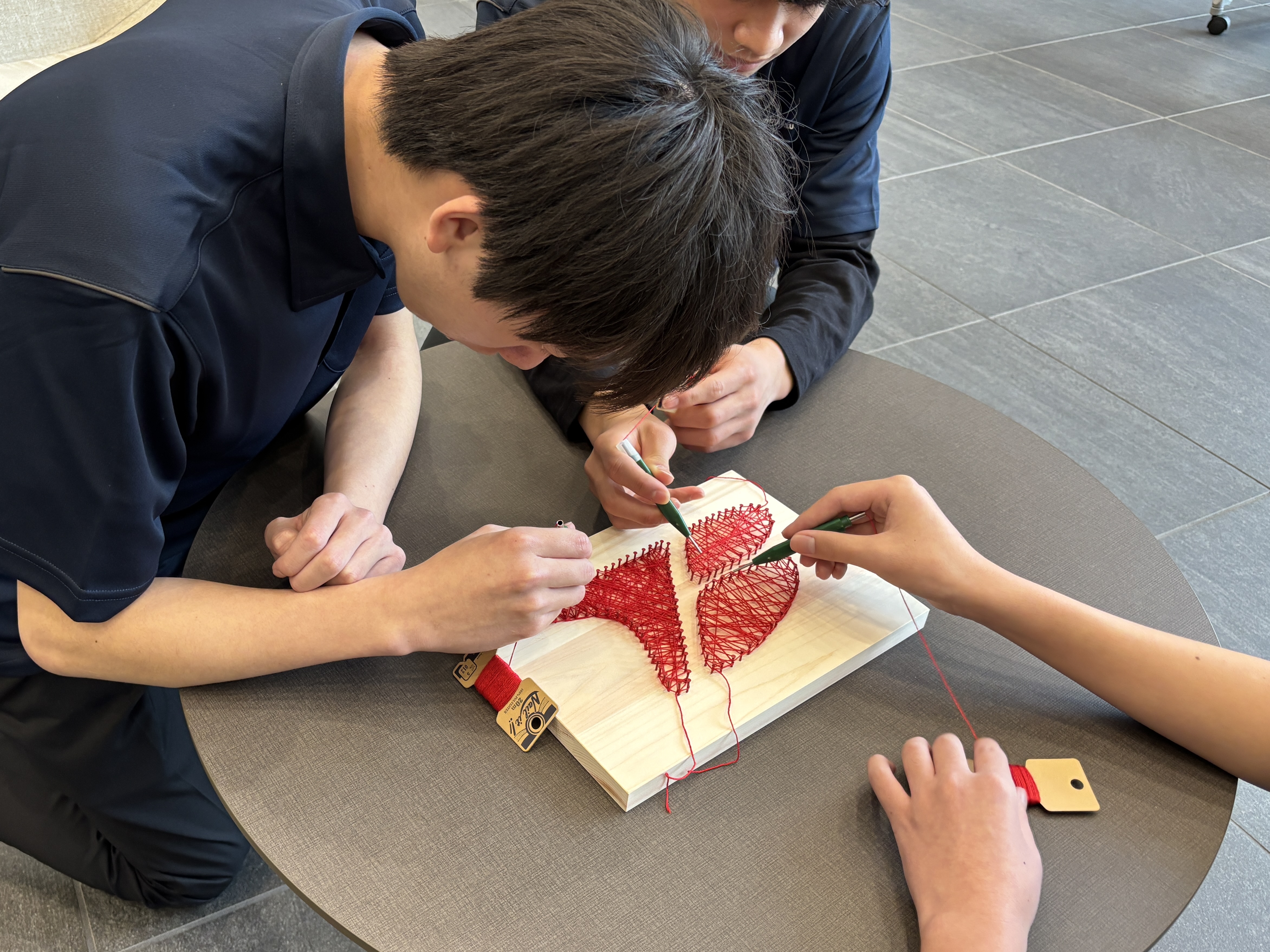 新入社員が糸でストリングアートを製作