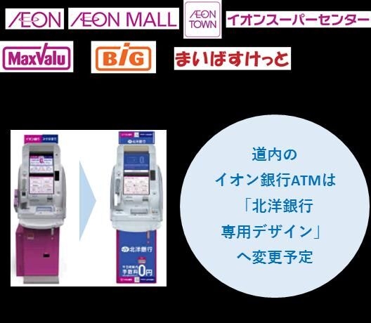 ~『ほくよう「ATMタッチポイント拡大」プロジェクト』第3弾~イオン銀行とのATM相互無料提携およびイオン銀行ATMの利用時間延長について 北洋銀行(頭取 津山 博恒)は、株式会社イオン銀行(代表取締役社長 木坂 有朗様)とATM 相互 無料提携(他行利用手数料の無料化)を実施します。あわせて、北洋銀行のキャッシュカードでイオン銀行ATM をご利用いただける時間帯を延長します。いずれも 2026 年 9 月中旬より実施予定です。
