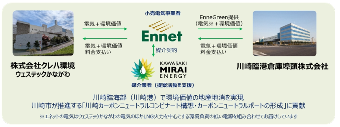 川崎臨海部(川崎港)で実質再エネ電力の活用・環境価値の地産地消を実現! ~企業連携により川崎カーボンニュートラルコンビナート構想・カーボンニュートラルポートの形成を支えます~ (川崎未来エナジー × 川崎臨港倉庫埠頭 × クレハ環境 × エネット)