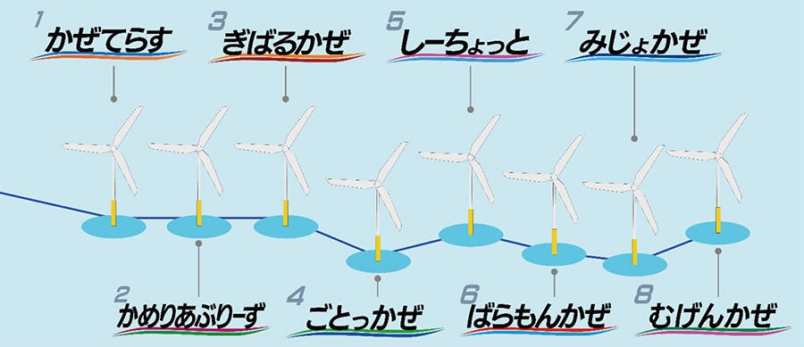 ※2025年4月21日リリース「五島市沖浮体式洋上風力発電事業発電所および各風車8基の名称披露式の開催」