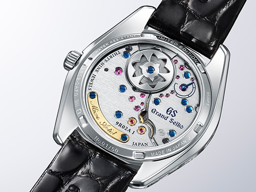 本モデルには、高級腕時計の専門工房「マイクロアーティスト工房」(※4)の経験豊富な匠の技によってつくり出される手巻スプリングドライブムーブメント「キャリバー9R02」を搭載しています。この「キャリバー9R02」はグランドセイコー専用スプリングドライブムーブメントの中で最も薄い、厚さ4.0mm。スリムで洗練されたケースデザインに大きく貢献し、1967年に発売された初代44GSと同じ9.6mmの厚さとなっています。そして、1つの香箱の中に通常よりも薄く長い2つのぜんまいを並列に重ねた「デュアル・スプリング・バレル」と「トルクリターンシステム」(※5)を融合させた機構により、約84時間のロングパワーリザーブを実現し、高い実用性も兼ね備えています。