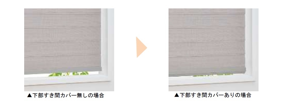 新たなオプションとして、下部の隙間を軽減する「下部すき間カバー」を追加。製品の構造上、遮蔽時に発生する下部の 隙間をカバーし、光漏れを軽減。より快適な室内環境づくりに貢献します。