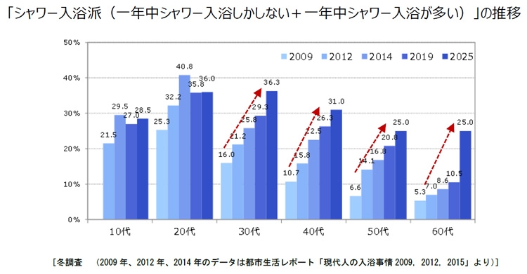 「シャワー入浴派」は30代以上で増加し、年代差が縮小