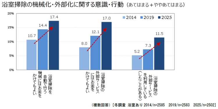 浴室掃除の「自動化・外部化」への意向が上昇傾向