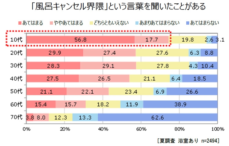 10代の7割以上が「風呂キャンセル界隈」という言葉を認知