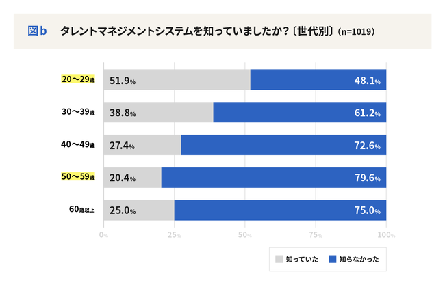 さらに同じ質問に対しての答えを世代別でみると、20代の回答者のうち51.9%と約半数が「知っていた」と回答、50代の2.5倍となり、世代間での認知度に大きく差がでた結果となりました。