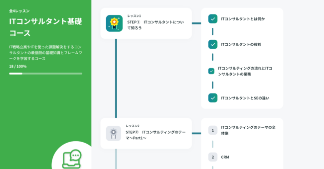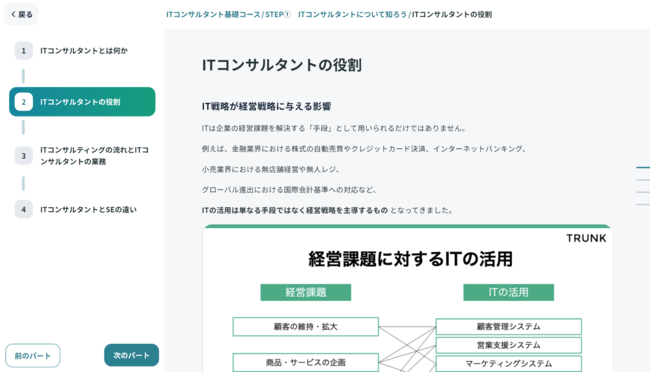 第1弾として、今年の8月には就活への理解を深めることを目的とした動画視聴機能である「キミトレ」をリリースいたしました。第2弾として、ITコンサルタントやデータサイエンティスト・エンジニアまで様々な業務の専門的スキルを身に着けられる28コースもの無償学習コンテンツの提供を開始します。