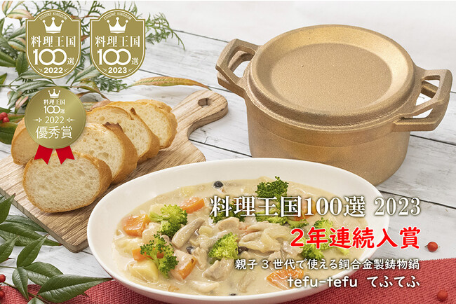 宮崎県北部にある銅合金専門の鋳造所、有限会社日向キャスティング(本社:宮崎県日向市東郷町山陰乙125、代表取締役:笹部直規)のキッチン用品製造ブランドimonoが手掛ける銅合金製鋳物鍋「tefu-tefu てふてふ」が、権威ある料理情報誌「料理王国」において、プロの料理人が選ぶ「料理王国2023 100選」を二年連続で入賞いたしました。