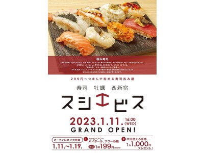 株式会社シーズン2(東京都渋谷区)は、コロナ禍においても東京恵比寿・神戸三宮・大阪天王寺・なんばなどで月商坪売50万円超えの超人気店「スシエビス」を、2023年1月11日「西新宿スシエビス」としてオープン致します。