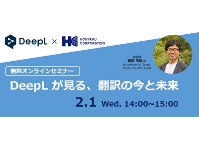 多言語翻訳サービスを展開する株式会社ホンヤク社(代表取締役:原田真)は、ニューラル機械翻訳サービスを展開するDeepL(Japan Country Lead :藤原 茂晴)との合同Webセミナー『DeepLが見る、翻訳の今と未来』を2023年2月1日(水)に開催します。
