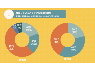 スタッフ登録をしているのは、首都圏、関西圏共に、50代が最も多く、次いで40代が多い結果に