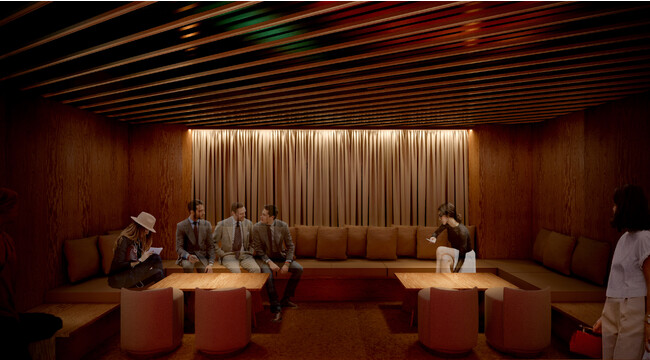韓国・ソウルにいるような心地よいカルチャーバーを設計する。をコンセプトに、韓国の店舗とし装飾として象徴的なネオンサインを店内に散りばめながらも、ウッド(木材)を中心に構成する空間づくりをする事で、華やかでありながら落ち着きのある心地良い洗練されたミュージックバーに仕上げています。