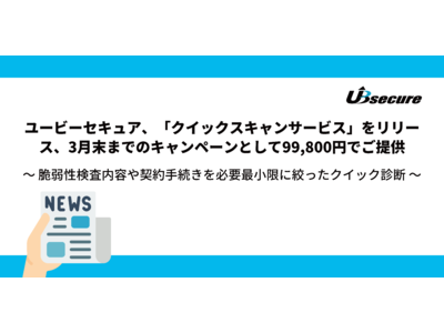 株式会社ユービーセキュア(本社:東京都中央区、代表取締役社長:松田 陽子、以下「ユービーセキュア」)は、Webサイトの脆弱性検査内容や契約手続きを必要最小限に絞った「クイックスキャンサービス」をリリースしました。