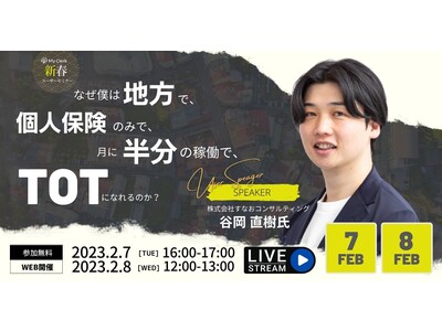 保険業界専門オンライン秘書サービス My Clerk(マイクラーク)を展開する 株式会社マイクラーク(宮城県仙台市 代表取締役 北川英之 https://myclerk.net/ 、以下 マイクラーク社 )は、株式会社すなおコンサルティング株式会社 代表取締役 谷岡直樹氏をゲストに迎えた新春ユーザーセミナーを2月7日(火)16:00-17:00・8日(水)12:00-13:00に追加開催することを決定しました。