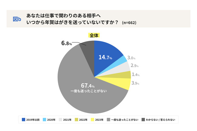 ・2023年仕事で関わりのある相手へ年賀はがきを送った人は約3割