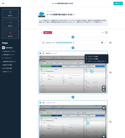 ブラウザ上でのクリックやタイピングといった操作をスクリーンショットと共に自動的に記録することができるので、正確なプロセスを記録して共有することができます。