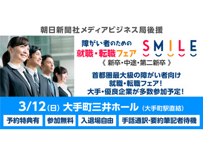 首都圏最大級の障がい者向け就職・転職フェア「SMILE」が3/12(日)東京・大手町にて開催!